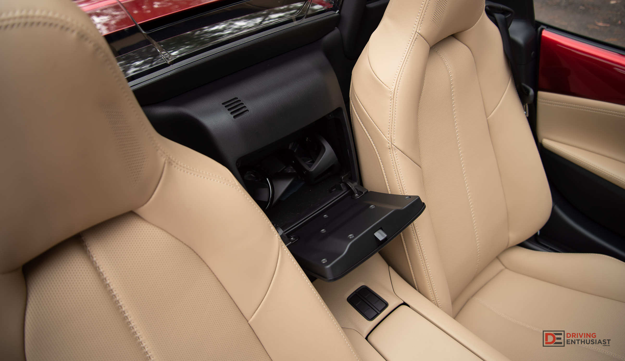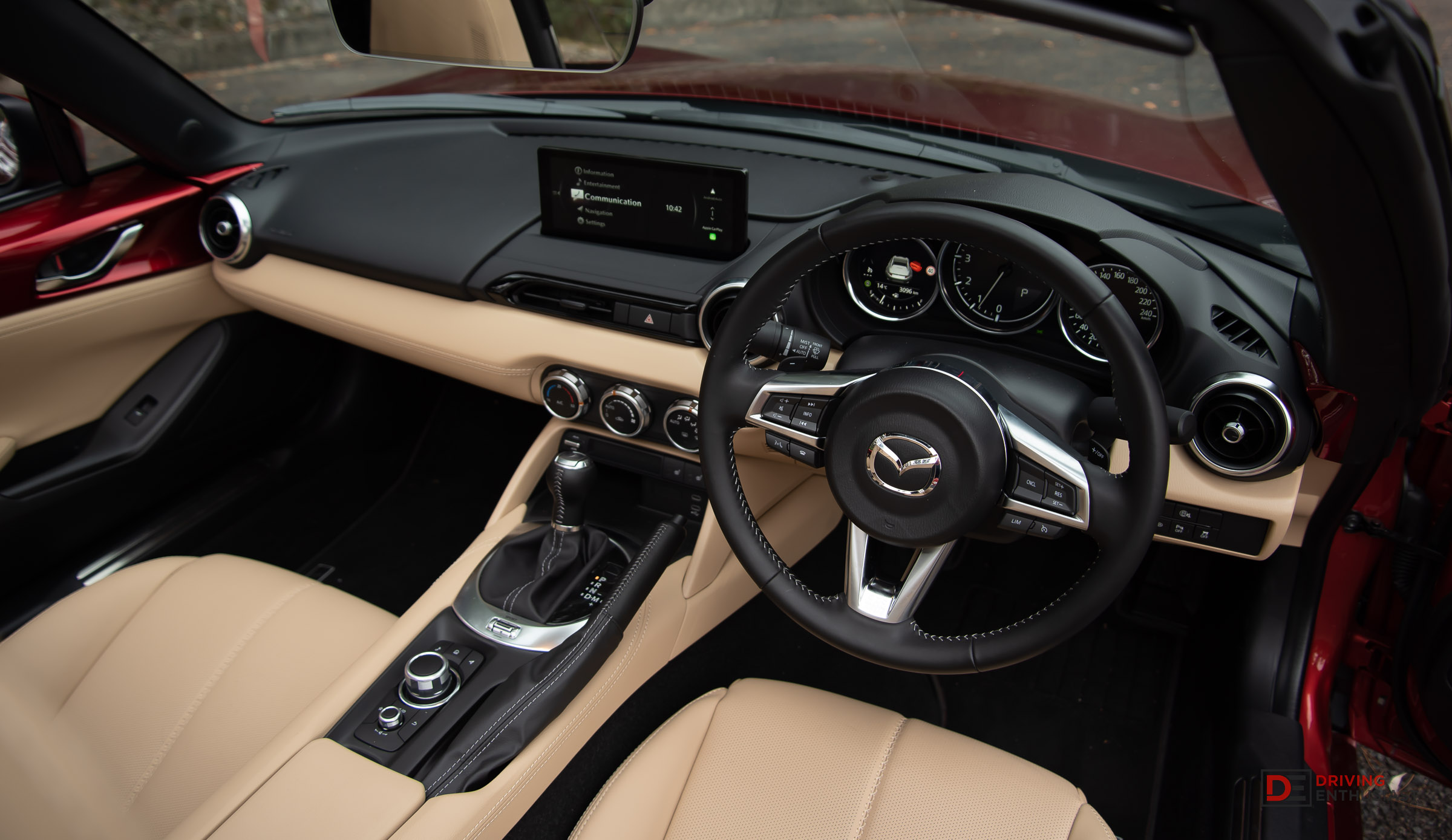 Those expecting a budget affair inside the 2024 MX-5 G20 GT will be blown away by the tan Nappa leather, contrasted with black upper dash inserts and body-coloured finishes on the door. It is such a luxurious combination at a first glance and feels more like a relaxed grand tourer than a sports car. The only clues to the latter are slightly shallow seats.