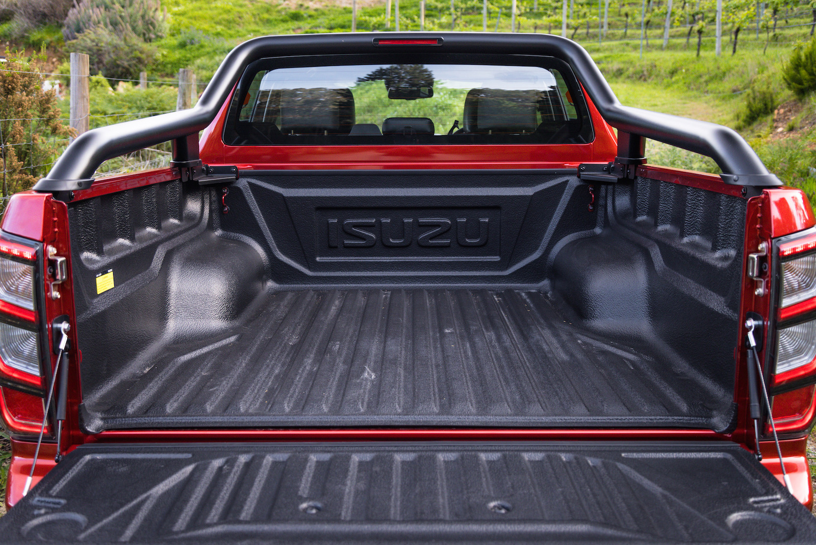 A highlight is the reinforced steel bash plate, coloured war paint red. That its recovery points are rated to 8000kg is a prime example of the dual-purpose role almost everything new on this ute serves. 17-inch wheels shod with 275/65 Goodyear Wrangler Duratrac RT tyres wind the aggression up as well as providing unexpected ride and handling benefits.
