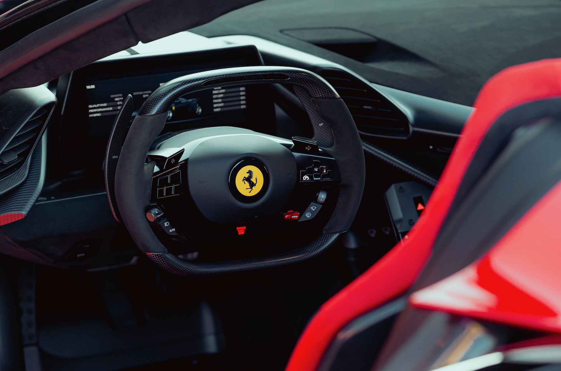However, the V6 itself develops 662kW (900PS). For specific output, as in power per litre, it offers the highest of any Ferrari engine ever, at 220.6kW per litre. For reference, the 1103kW/1500PS Bugatti Chiron offers a specific output of 137.8kW per litre.