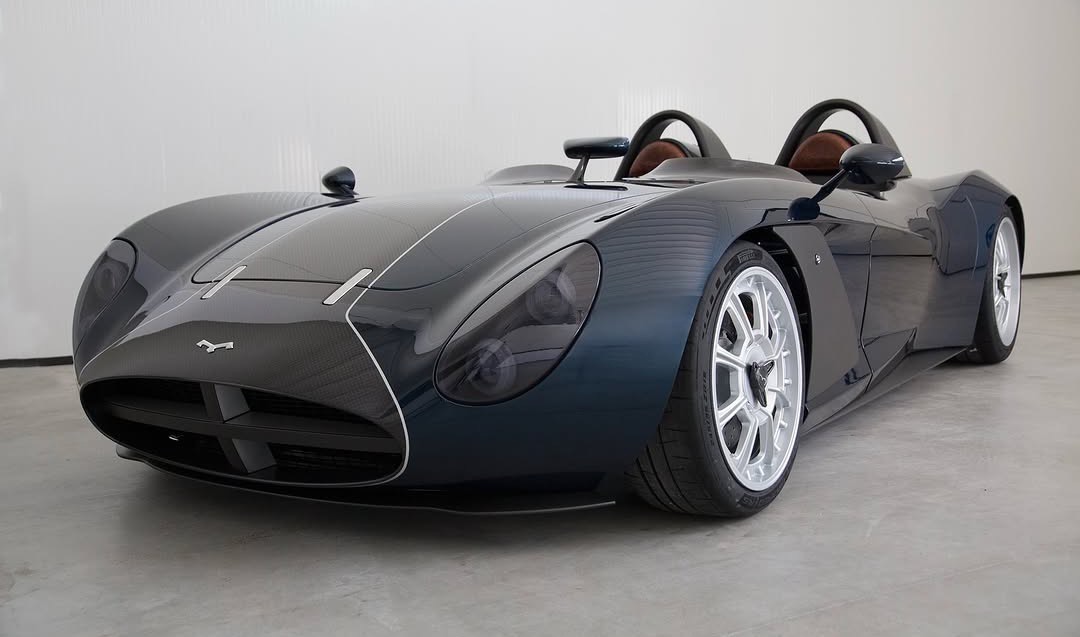 A naturally-aspirated V8, believed to be sourced from Ford and re-engineered by Italtecnica Engineering, sits under the sleek bonnet, generating around 368kW, propelling less than 1000kg of weight.
