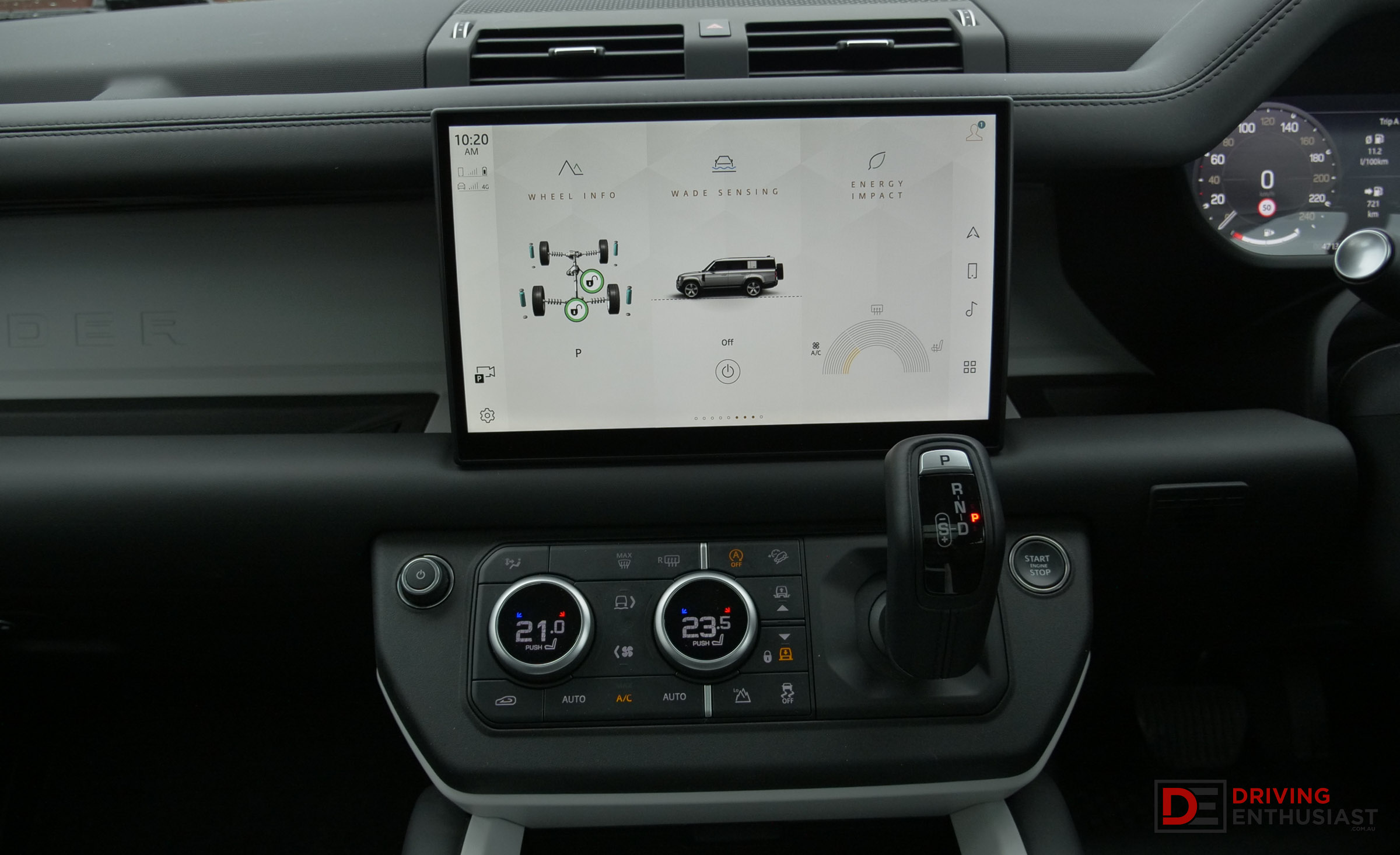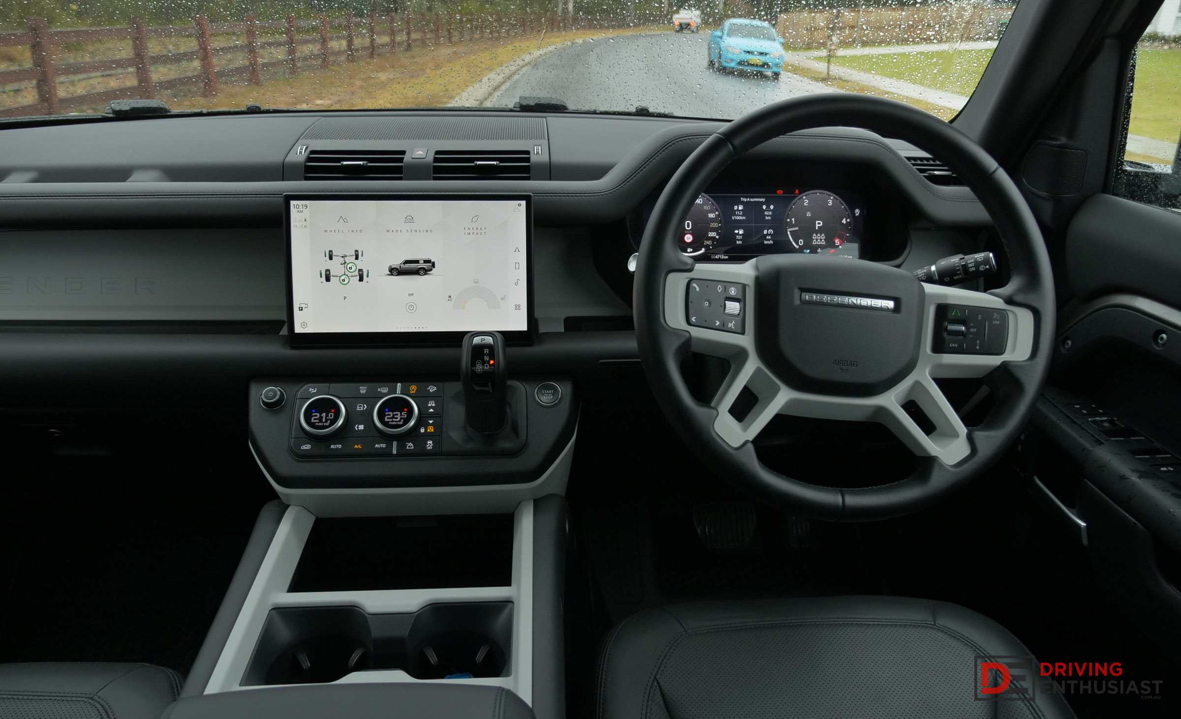 A digital driver’s display complements the main screen, providing crisp navigation and vehicle information with neat, customisable layouts. Connectivity is comprehensive, offering multiple USB-C ports across all three rows, a wireless charging pad, and even an optional household power outlet for running small appliances. Defender also offers a tyre inflator compressor that tucks neatly into the wall of the boot.