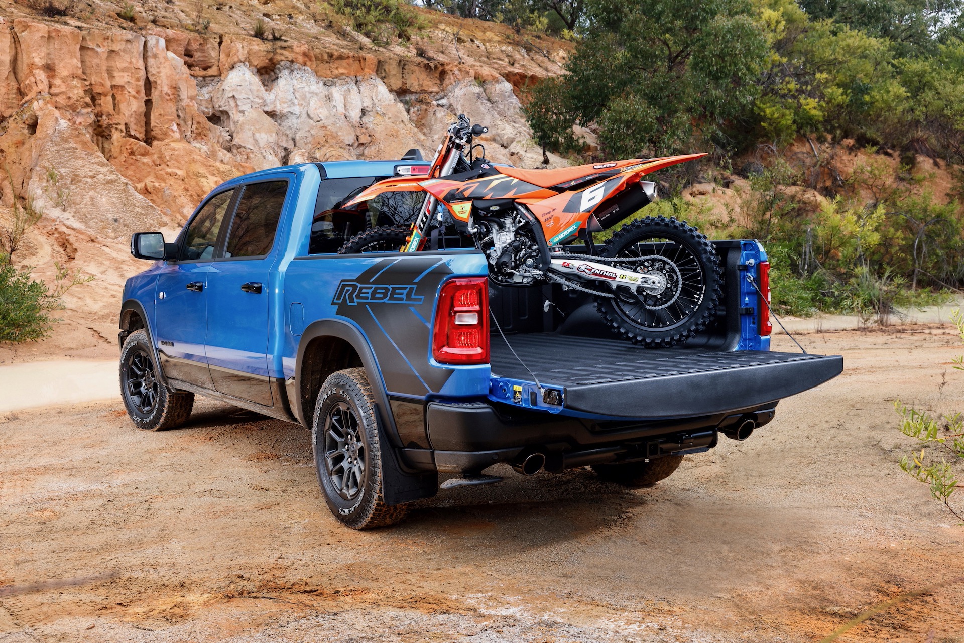 The only real compromise compared with other 1500 variants is that the Rebel doesn’t offer the RamBox storage system in the tub sidewalls. Instead, it gets a full-size tub (25mm wider), which does make sense for those carrying larger loads like dirt bikes or camping gear. Payload is rated at 893kg – the highest of the current local lineup (863kg for Laramie Sport and 782kg for the Limited) – further boosting its practicality credentials.