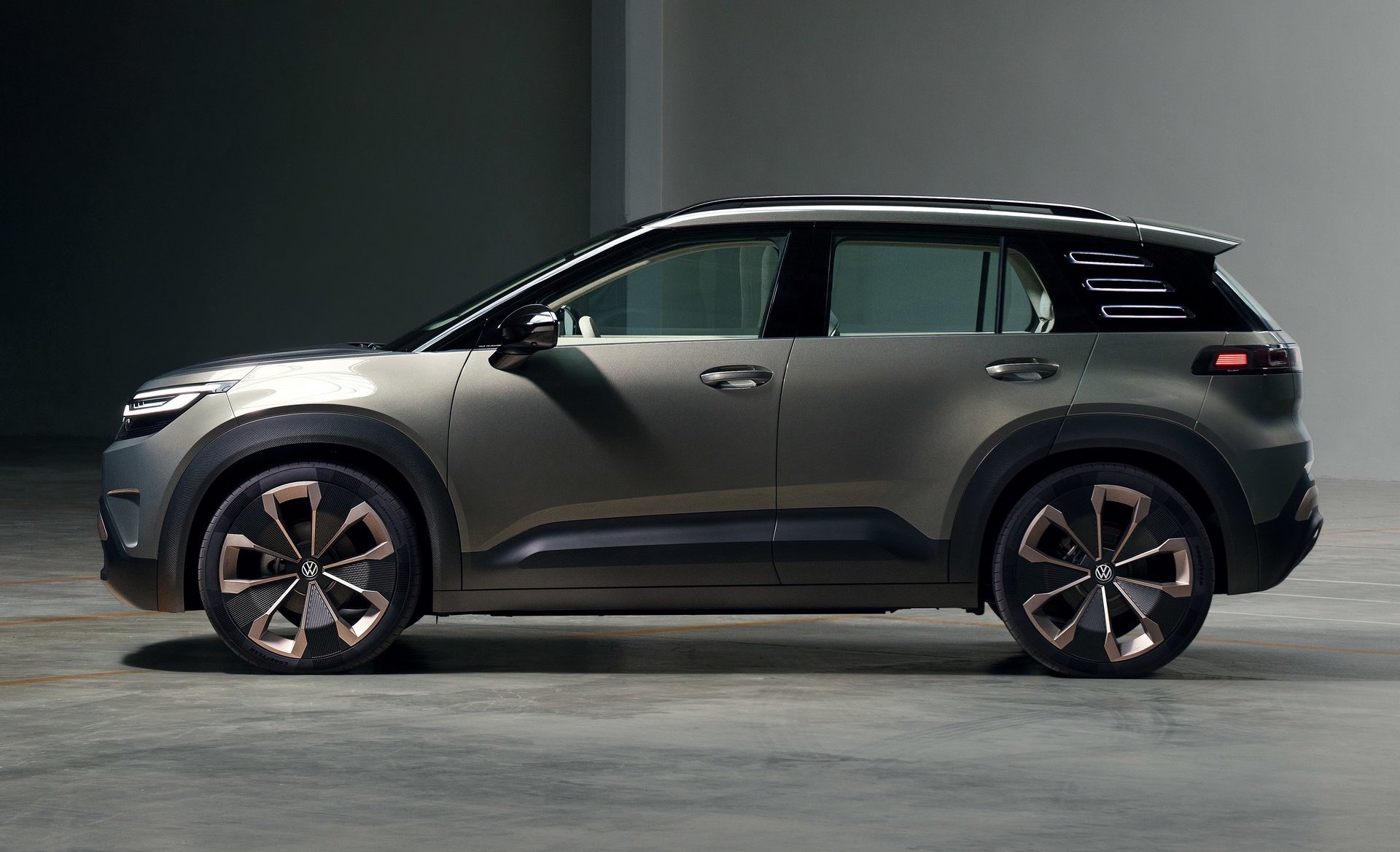 Stylistically, a simple aesthetic with a new corporate face is adopted, featuring a lightbar, illuminated VW logo and ‘eyebrow’ LED lights. Bodyside sculpting and textured wheel arches give the SUV a premium feel, as well as the three rectangular strakes on the otherwise blacked out D-pillar.