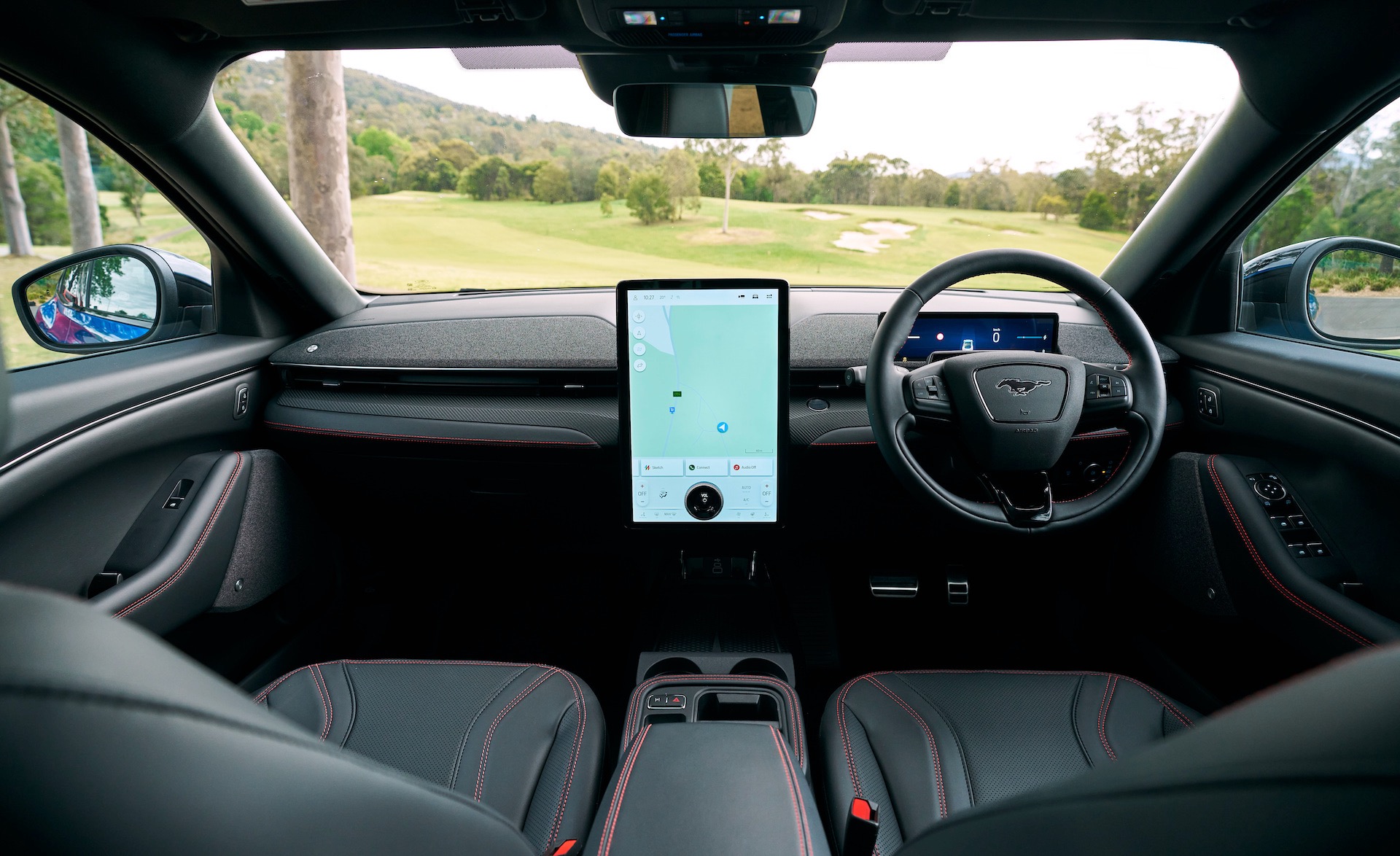Inside, the cabin delivers a sense of calm sophistication that contrasts somewhat with the bold exterior. There’s a open, modern layout dominated by a vertical 15.5-inch touch-screen running Ford’s SYNC 4A, complemented by a slim digital instrument display. It’s an interface that takes some getting used to, but Ford has wisely retained a dedicated strip for climate controls at the bottom of the screen – a small but appreciated nod to usability.