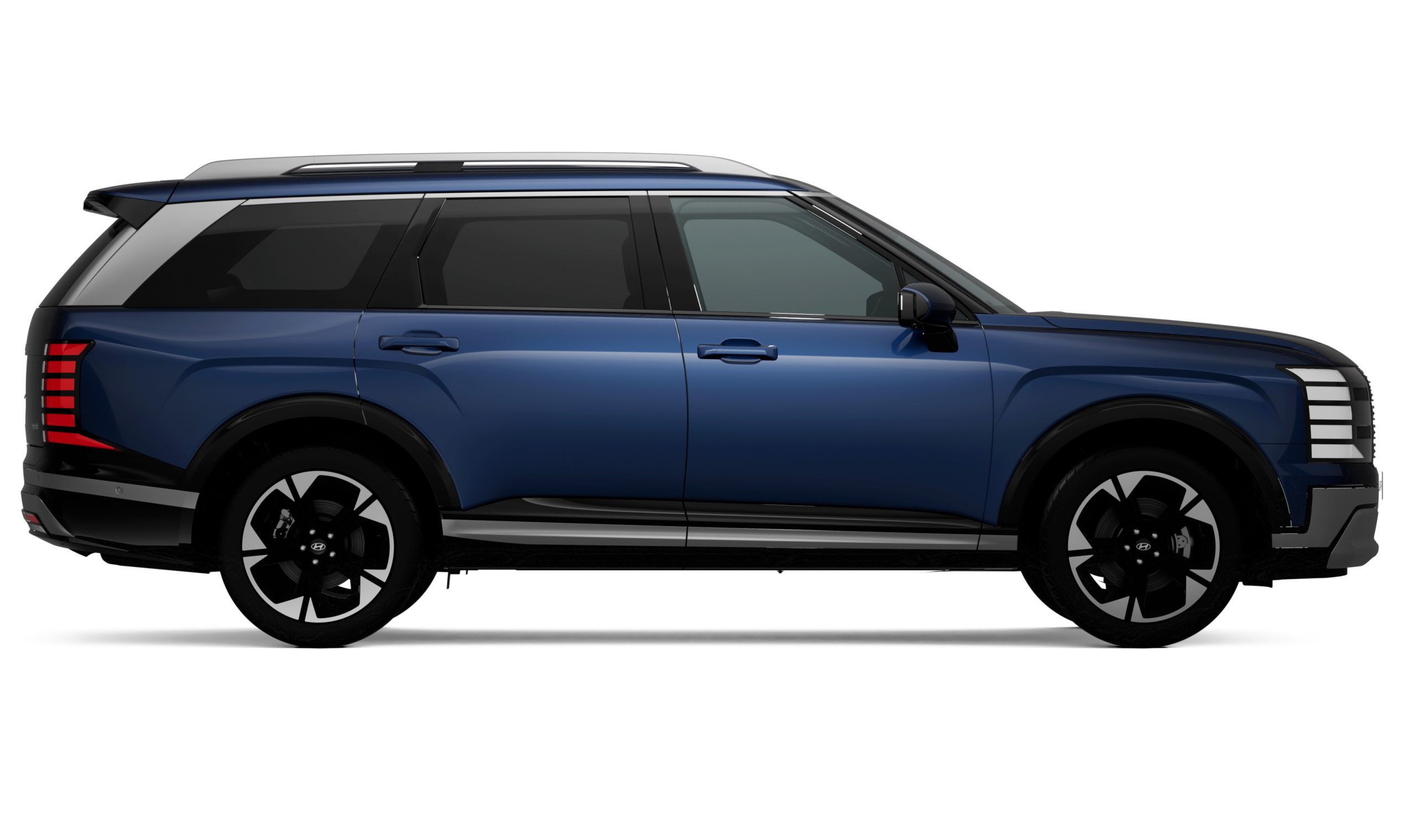 Inside, Elite uses the same twin 12.3-inch digital cluster and multimedia displays as Calligraphy, and includes a 14-speaker Bose audio system. Upholstery is black leather with premium cloth trim elements, and Hyundai has fitted acoustic front and solar-control door glass, plus privacy glass for the second and third rows.