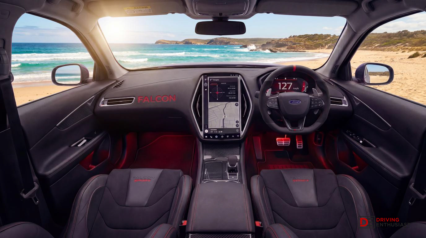 The cabin would need to walk a fine line. It cannot just be a Tesla-style empty room, because Falcon people like switchgear, vents and a sense of mechanical intent. But it also cannot feel like a 2014 FGX with a tablet glued to the dashboard. The ideal cabin would keep the broad, horizontal, driver-focused Falcon architecture, then layer in the best of current Chinese EV display technology, Ford heritage graphics and some properly Australian safety thinking.